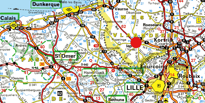 destination d'Ypres où il est emmené en autobus vers