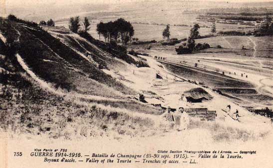 Massiges, au nord de Ville sur Tourbe. Les lignes