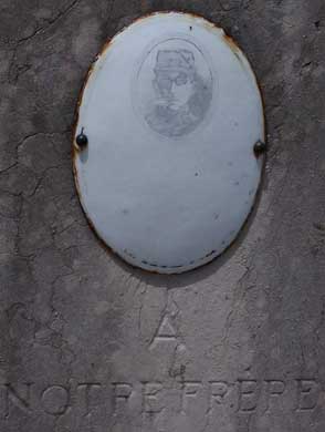 Plus haut, son portrait sur une plaque émaillée, avec