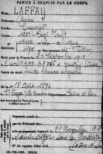 septembre 1918, dans une ambulance du front, des suites de ses