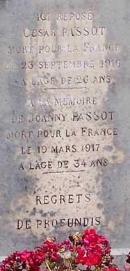 PASSOT, Joanny PASSOT (sa tombe est au cimetière de Saint