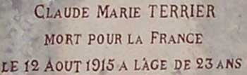 TERNOISE 20 Inscrit sur le Monument aux Morts de