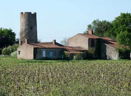 culmine sur un site venteux au milieu des vignes. Sa tour