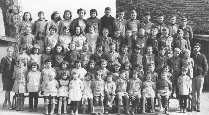 photo de classe de 1961 - école de Martragny - M. et Mme Plier sont enseignants