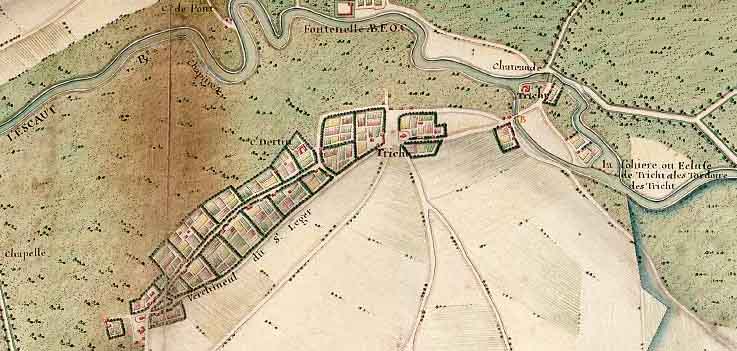 On voit l'Escaut, Verchineul dit St Léger, Tricht, le château de Tricht, l'écluse de Tricht...
