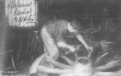 devant son atelier, semployant à embattre une roue. Le