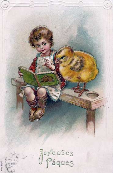 Françoise Masson nous offre des cartes du 1er avril et de Pâques reçues à Saint Léger Triey au début du XXe siècle :