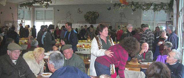 à l'intérieur de la salle des fêtes, était