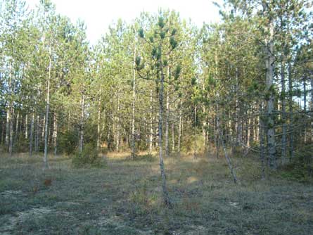 C'est comme un clos entouré de pins squelettiques.