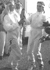 acheminent la Flamme Olympique. Le flambeau traverse