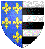 "Mi-parti, au 1 d'azur à cinq fleurs de lys d'or