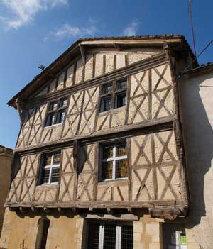 colombage du XVIe qui, associant pierres et pans de bois enduits