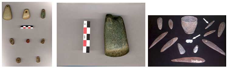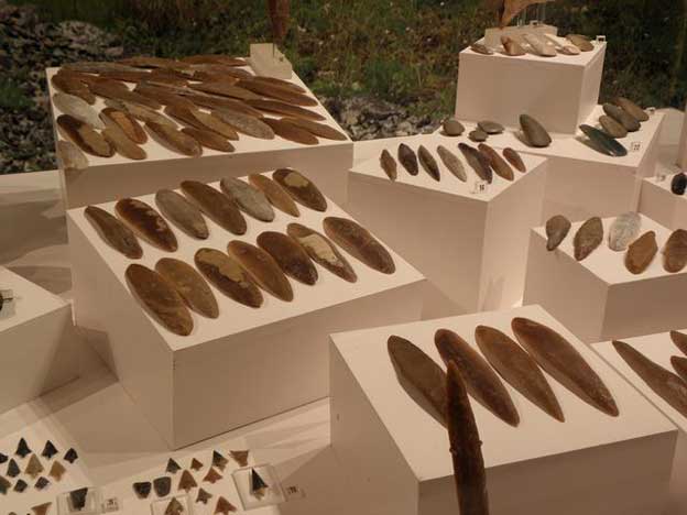 les lames en silex montrent une grande variété de formes - les haches polies en matériaux très élégants