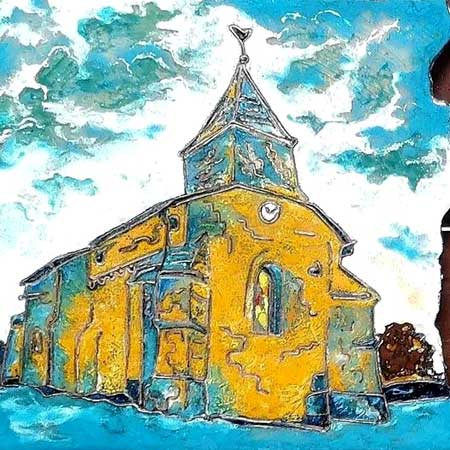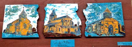 Voici, en émail cloisonné, "les 3 clochers" du village,