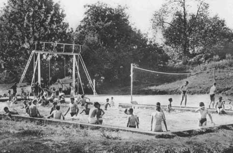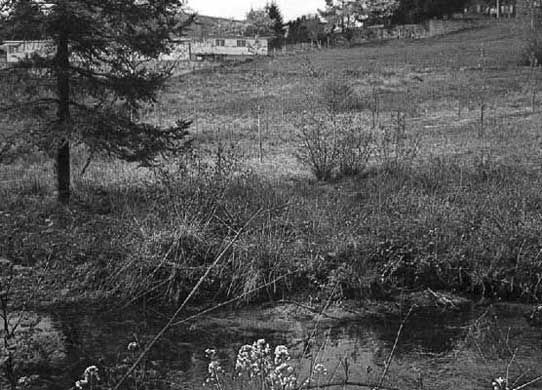 le terrain de sport (basket et piscine) et le pont romain, à gauche, que l'on reverra plus bas