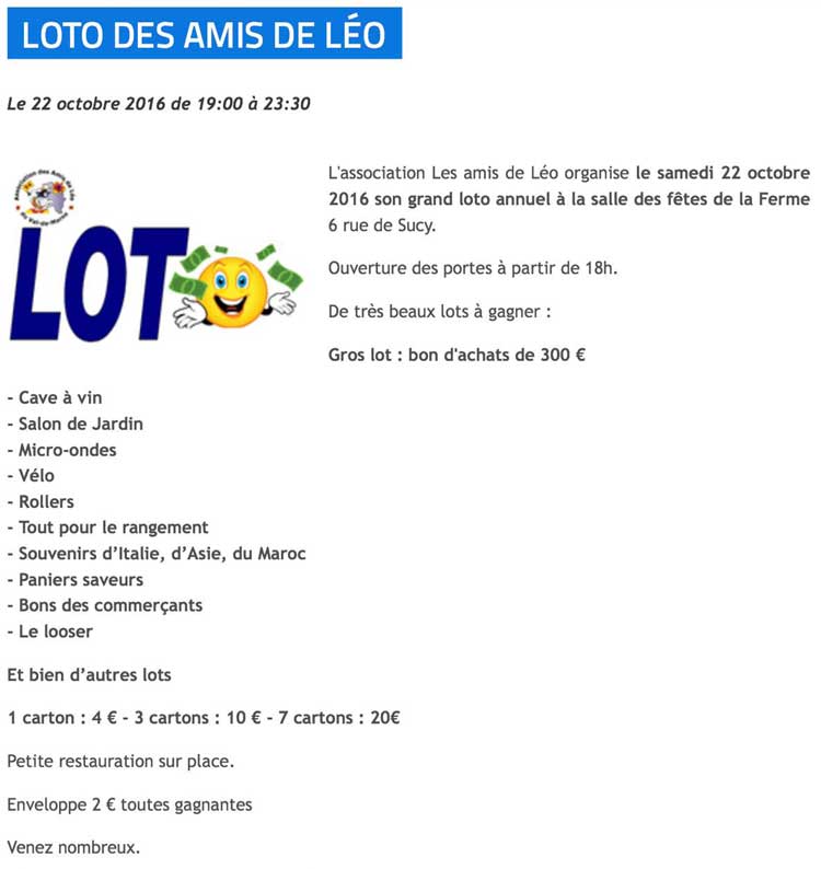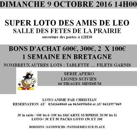 8 octobre - loto, salle de Vrères - organisation :