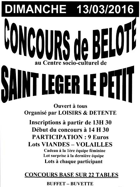17 avril - concours de belote - organisation :