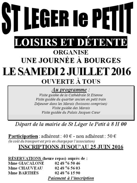 2 juillet - sortie à Bourges - organisation : Loisirs et