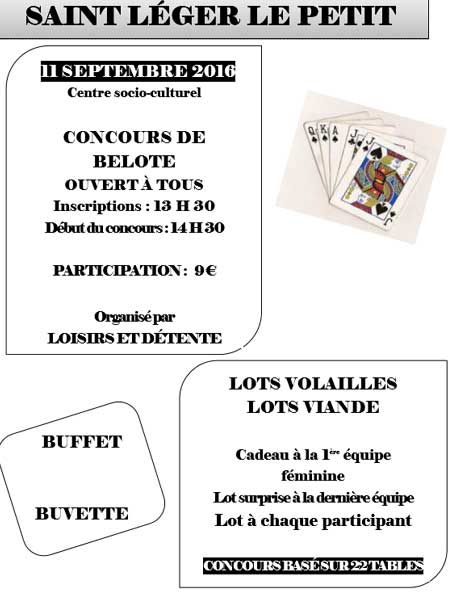 21 septembre - concours de belote, salle de Vrères -