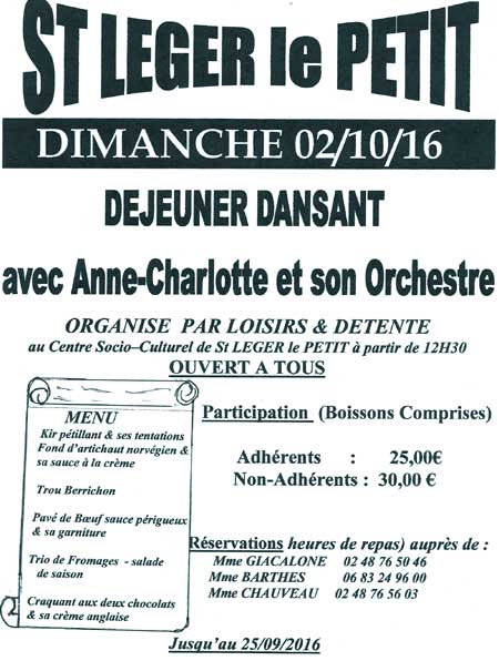3 avril - déjeuner dansant - organisation : Loisirs et