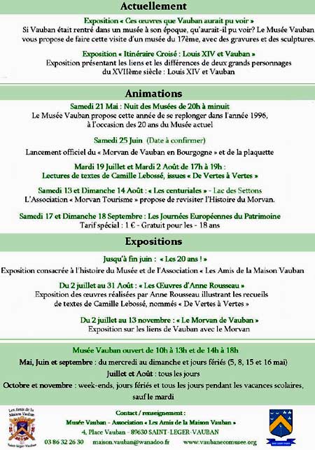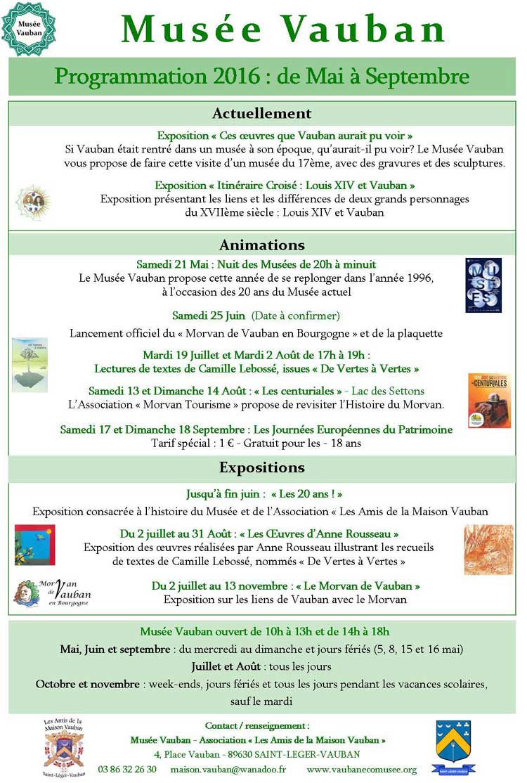 programmation de mai à septembre au Musée Vauban
