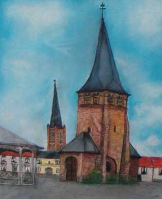 laquarelle de Vermote, avec le clocher actuel et est