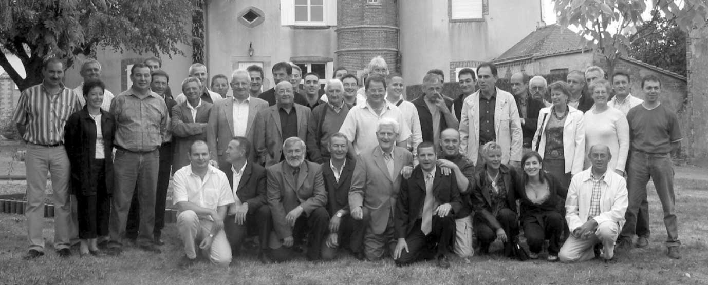 les présidents et les bénévoles du Comité des Fêtes dans le parc de la mairie, à loccasion du 50e anniversaire de la création officielle du Comité des Fêtes