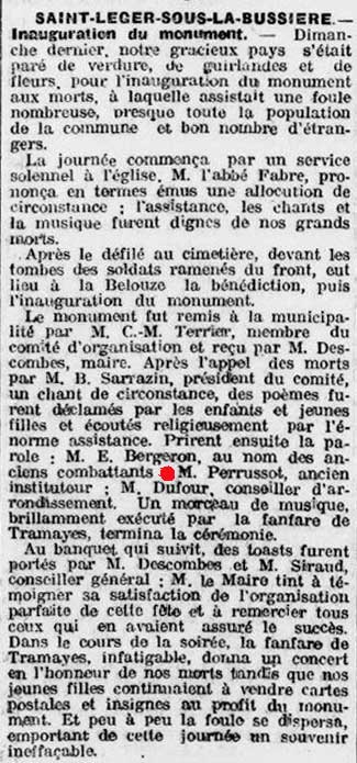 à l'inauguration du Monument aux Morts, le 2 septembre