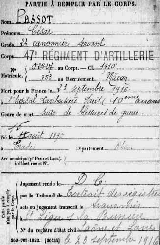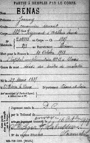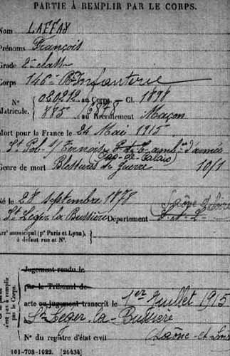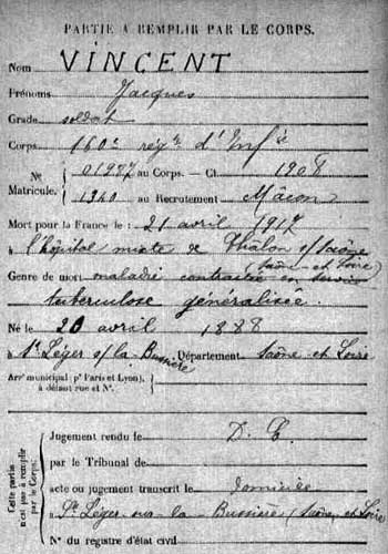 septembre 1918, dans une ambulance du front, des suites de ses