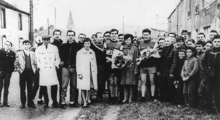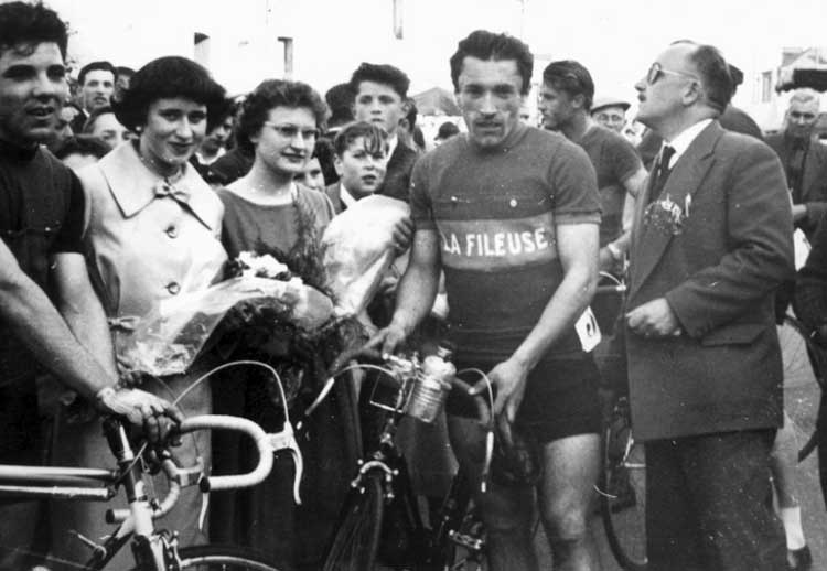 remettent la gerbe aux vainqueurs. On reconnaît Alphonse Leray