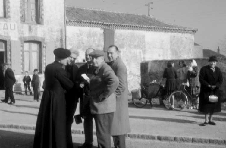 Sur la place, devant le café Landreau