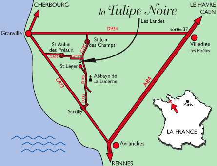 St Lô est à 60 km, Rennes et Caen sont à 100 km,