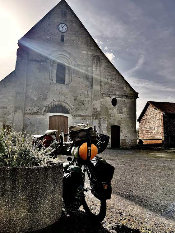 les pèlerins à vélo qui traversent le village.