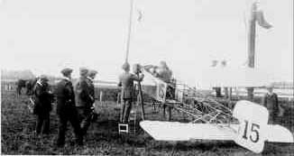 à bord d'un biplan Maurice Farman. Décollé de