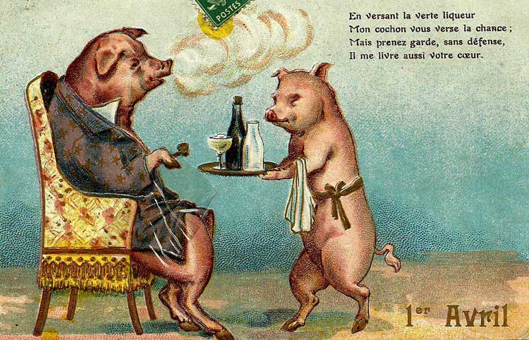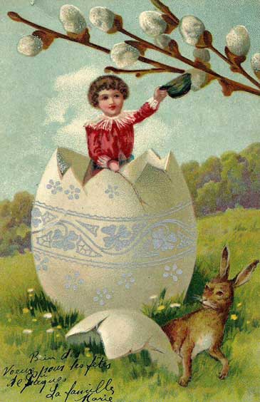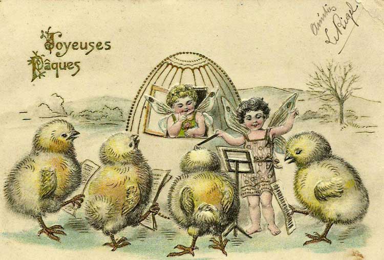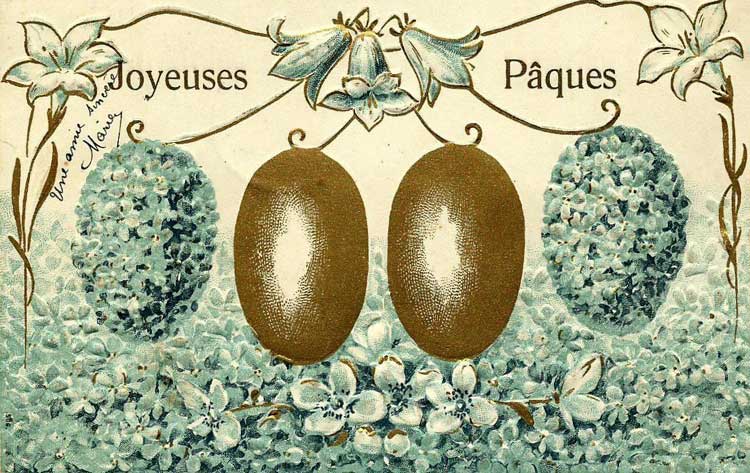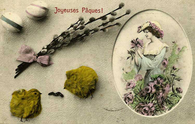 Françoise Masson nous offre des cartes du 1er avril et de Pâques reçues à Saint Léger Triey au début du XXe siècle :