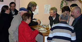 à l'intérieur de la salle des fêtes, était