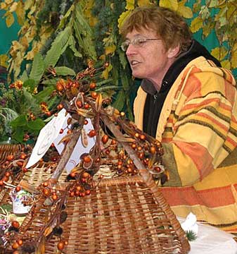 une fleuriste et des objets décoratifs (peinture sur verre).