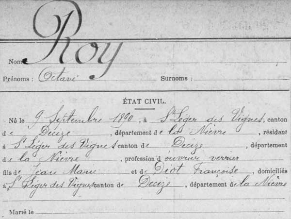 5) ROY Octave, le marié, verrier de profession, adjudant au