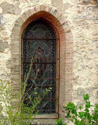 L'église est de style néo-roman et comporte sept