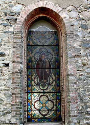 Une plaque, scellée dans le mur de la chapelle à gauche