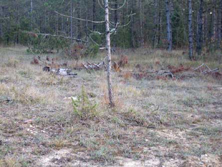 C'est comme un clos entouré de pins squelettiques.