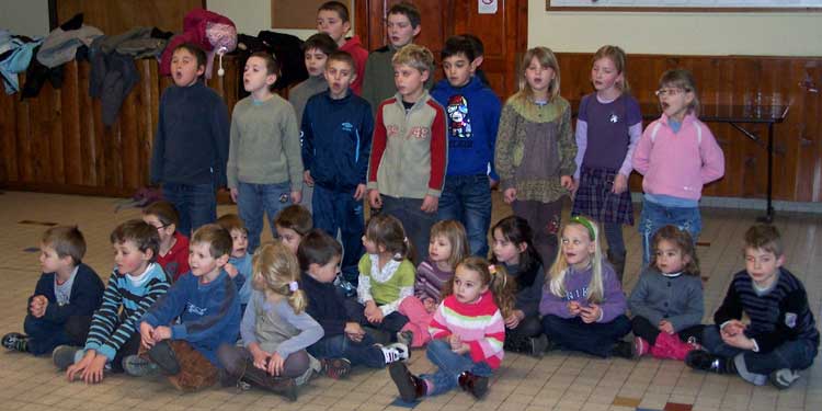 aux enfants de la commune qui, après un goûter dans