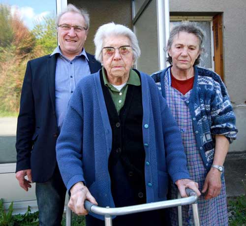 sourire. La centenaire du village est en train de converser avec