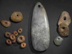 les lames en silex montrent une grande variété de formes - les haches polies en matériaux très élégants