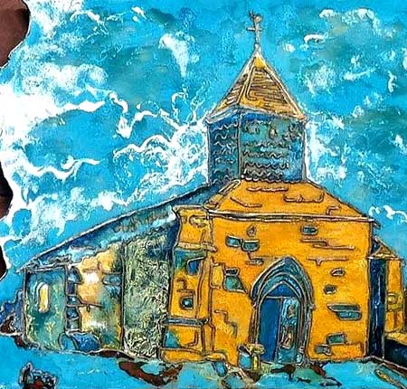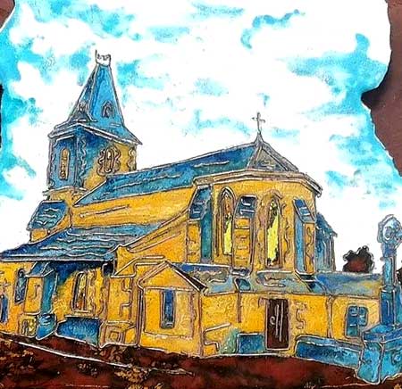 Voici, en émail cloisonné, "les 3 clochers" du village,