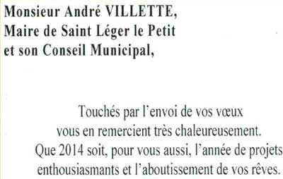 "Je souhaite à tous les Saint-Léger et à leurs habitants une bonne année 2014."
